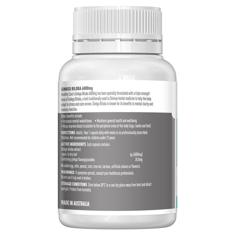 Tuyên bố về sản phẩm: Ginkgo Biloba 6000mg của Healthy Care đã được bào chế đặc biệt với liều Ginkgo Biloba mạnh gấp ba lần, một loại thảo dược thường được sử dụng trong y học thảo dược Trung Quốc để giúp cơ thể thích nghi với căng thẳng và làm dịu thần kinh